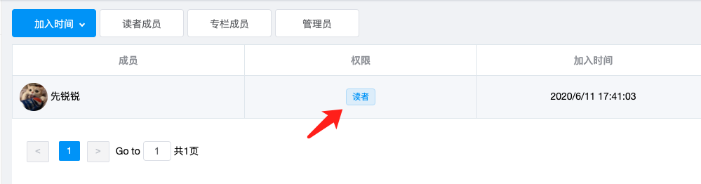 进入团队成员,默认关注者就是读者成员,其次是专栏作家,还有管理员,对应的权限如下: